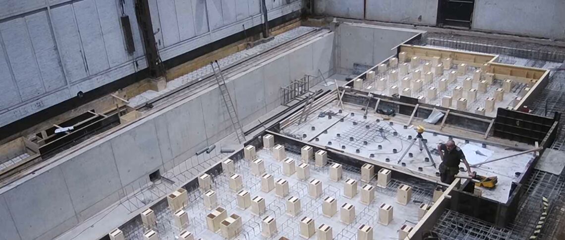 De keuze is gevallen op een in het werk gestorte afzinkkelder. Hierbij hoeven er vooraf geen grondkerende voorzieningen aangebracht te worden. Daarnaast leent zich de zanderige ondergrond met een lage grondwaterstand zich hier prima voor. Voorafgaand is de huidige op staal gefundeerde hoofddraagconstructie van het gebouw versterkt door middel van een ondersteuningsconstructie. Gezien de zeer strenge eisen vanuit de machineleverancier, de complexe geometrie en de circa 500 benodigde sparingen in de gehele constructie is er gedurende de DO en UO engineering zeer veel aandacht besteedt aan maatvoering en clash controles. De kelder is gefundeerd op schroefinjectiepalen welke met een minifunderingsmachine zijn aangebracht. Naast het ontwerp heeft RvB Engineering B.V. ook de vergunningprocedure verzorgd en tijdens de uitvoering het bouwmanagement en directievoering.